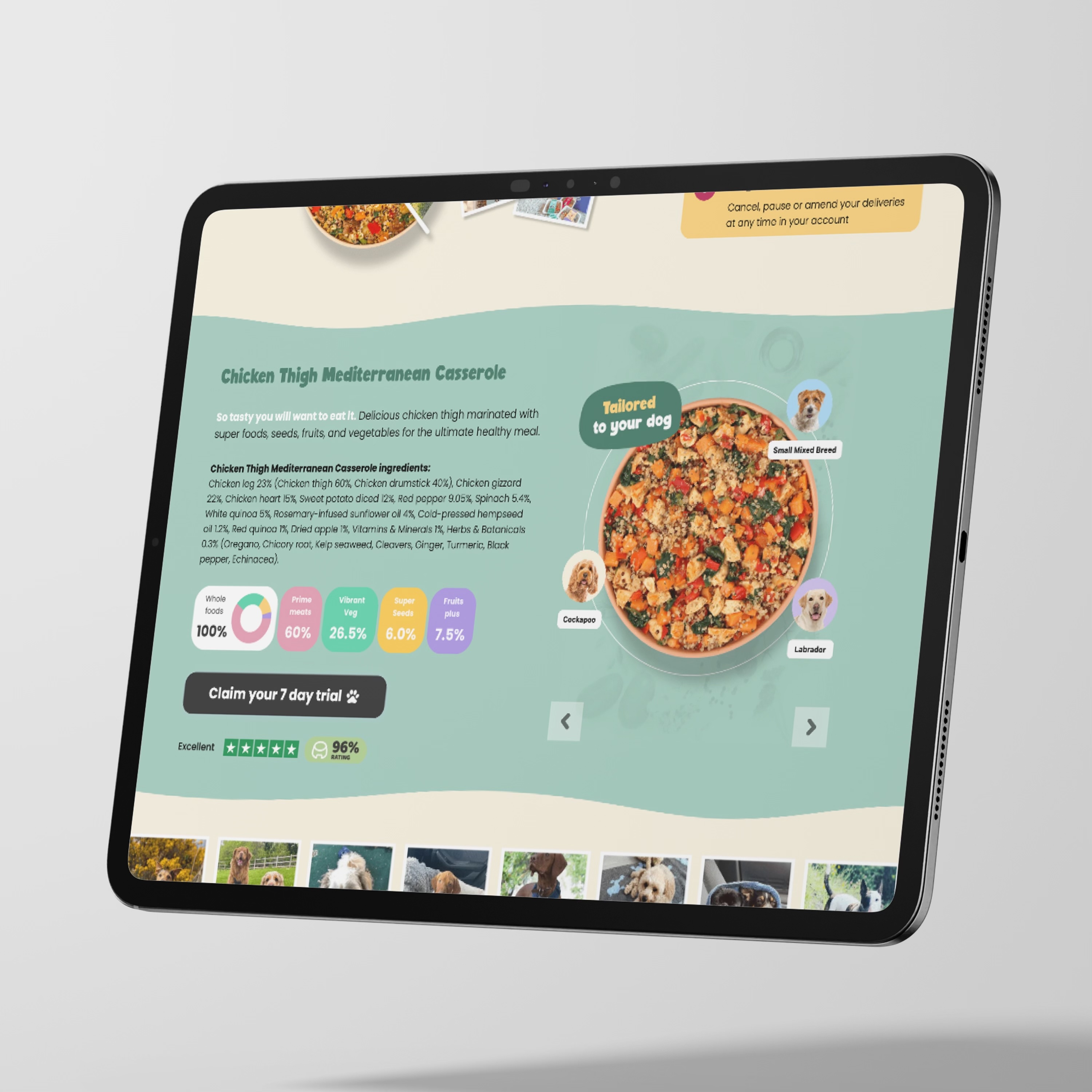 I focused on simplifying the user journey and highlighting the value of the service. Using research and competitor analysis, I mapped out clearer flows for sign-up and subscription management. In Figma, I designed new pages that explained the product in a friendly but professional way, making it easy for users to understand how the tailored diets worked. Alongside the site design, I carried out branding work and set rules for photography, typography and other design elements to guide in-house teams and keep the brand consistent.